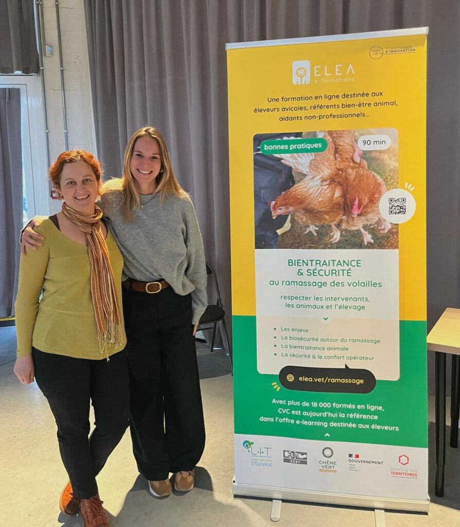 Cette journée a également permis à Natacha Sorin (Vétérinaire avicole en charge de la plateforme elea.vet) et Lou Vaysse (Ingénieure agronome chez SDBF) de mettre en lumière leur nouvelle formation ELEA dédiée à la bientraitance, la sécurité et la biosécurité lors du ramassage des volailles.